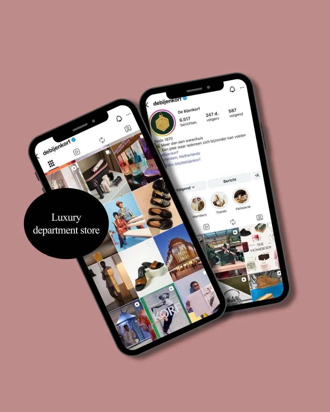 Trend-driven content creation for de Bijenkorf across Instagram, TikTok and Facebook, focused on engaging audiences and clear brand communication.